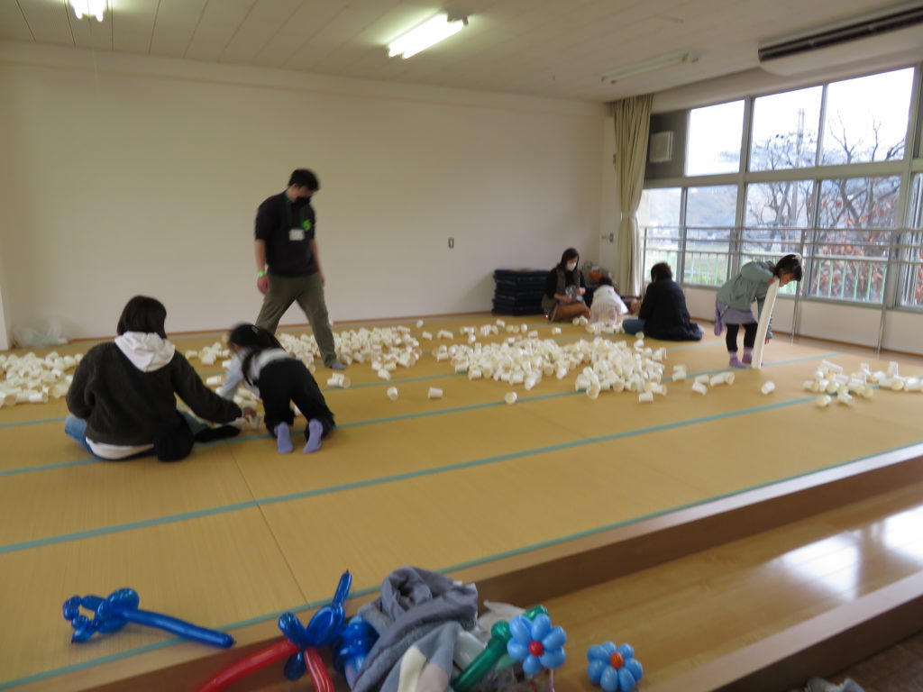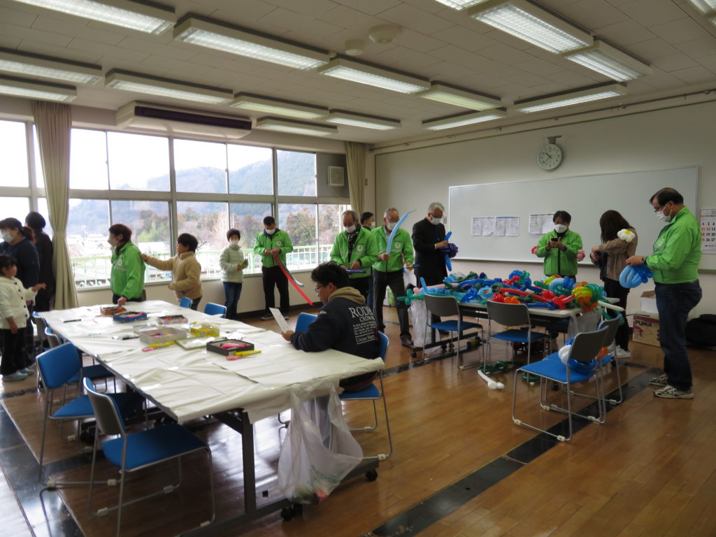 今年度は型抜き・くじ・スーパーボールすくい・紙コップタワーと青少年育成推進員連絡協議会の方々にはプラバンとバルーンアートを行っていただきました。